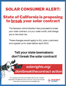 Act now to protect your solar investment and advocate for fair energy policies! Click here to submit your opposition: Solar Rights Alliance Form.