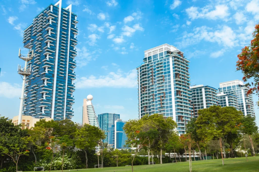 - Sleek high-rise residential buildings